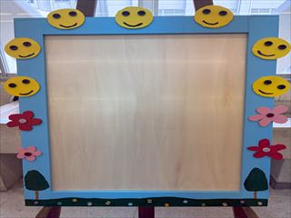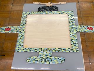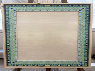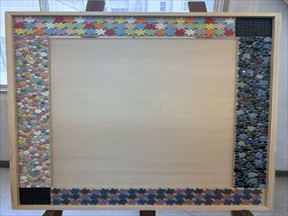 建築デザイン科3年生6名(課題研究班)と有志2年生4名・3年生3名の生徒が、夏休み期間も毎日登校し、17個の額縁を完成することができました。