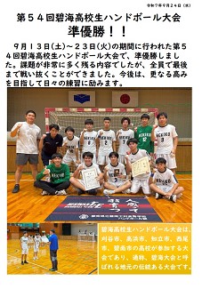 碧海高校生ハンドボール大会 準優勝!! | |